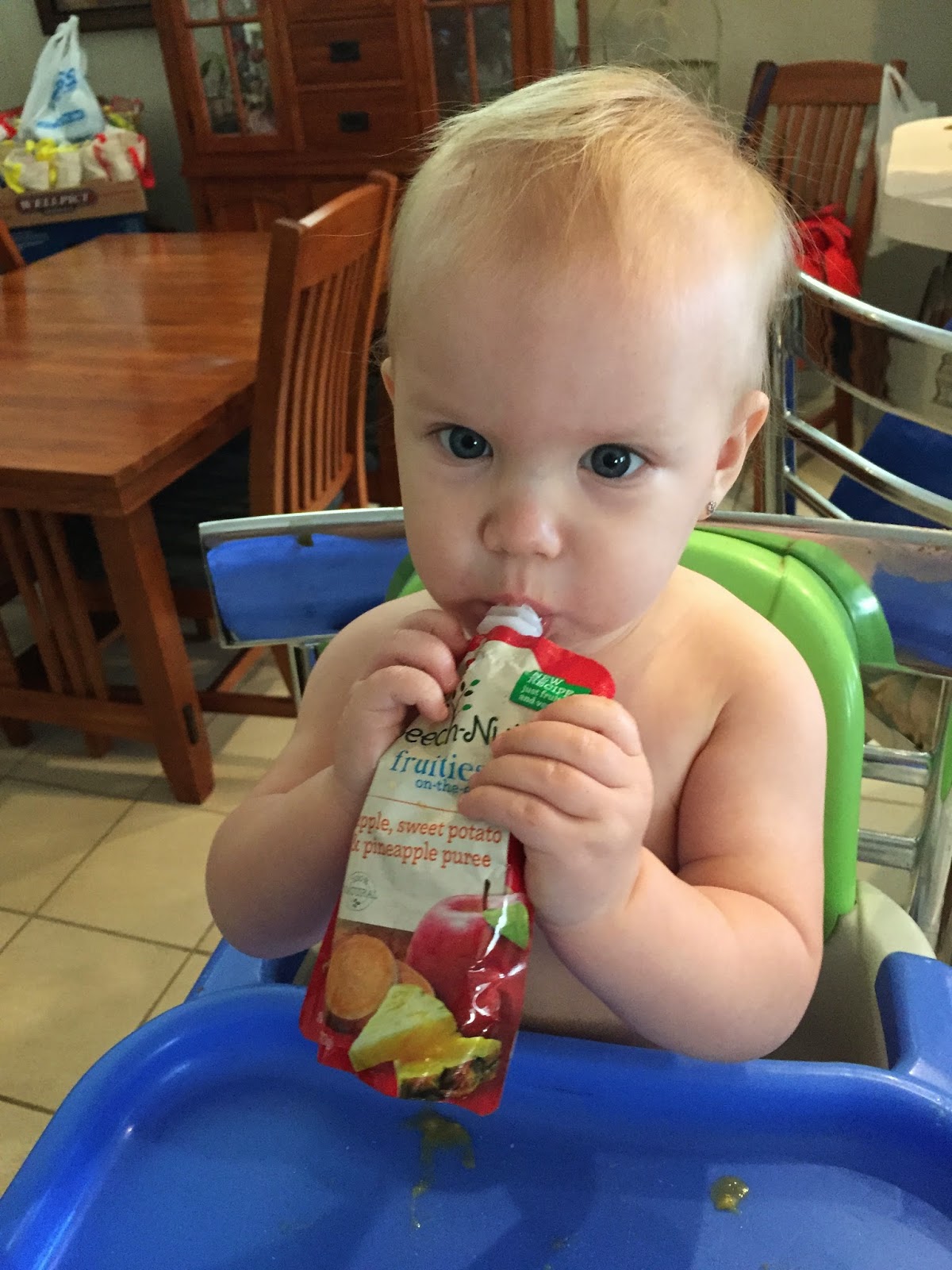 And during mealtimes like that, this is usually the result, a quick rinse off in the kitchen sink:) Unless we are at Grammy's house, she is banned from bathing in the kitchen sink because she was accused of pooping in the sink. Which is preposterous of course!